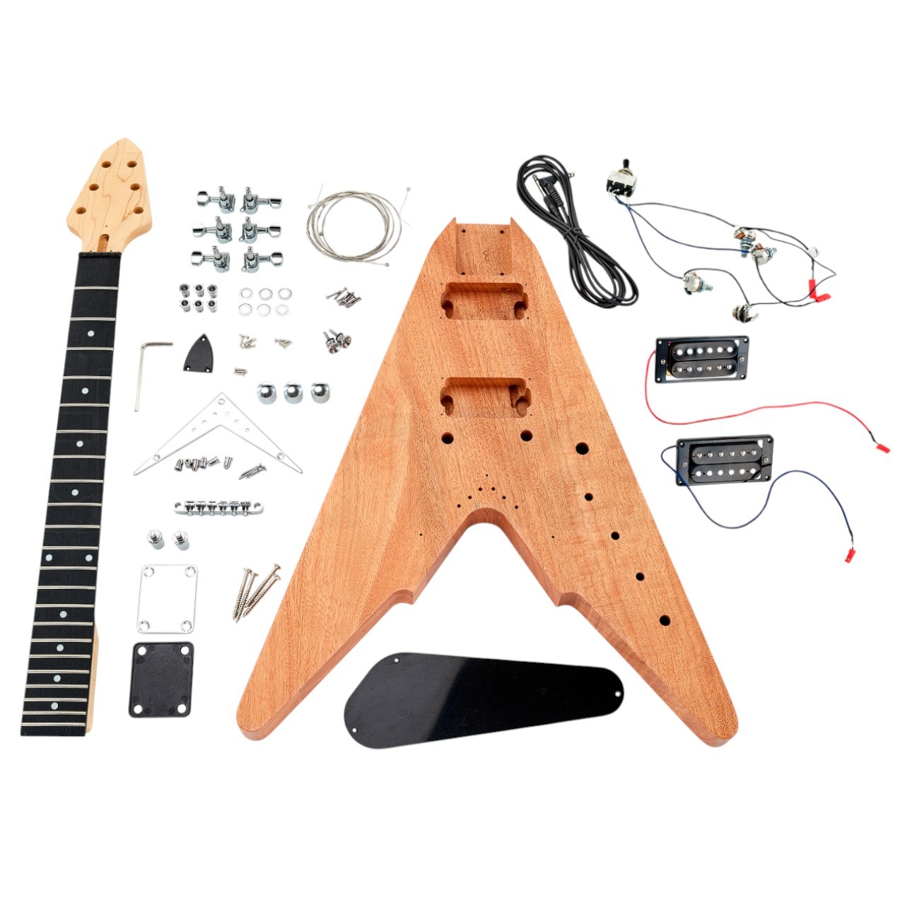 Набір для електрогітари Harley Benton Victory - це DIY-набір для створення сміливої та агресивної гітари. Завдяки гострій формі корпусу, цей набір ідеально підходить для любителів року і металу. Хамбакери, що входять до комплекту, забезпечують потужне звучання з високим коефіцієнтом підсилення, а незакінчений корпус надає повну свободу творчості. Незалежно від того, чи є ви новачком у створенні гітари, чи досвідченим гравцем, який шукає новий проект, набір Victory - це чудовий вибір.