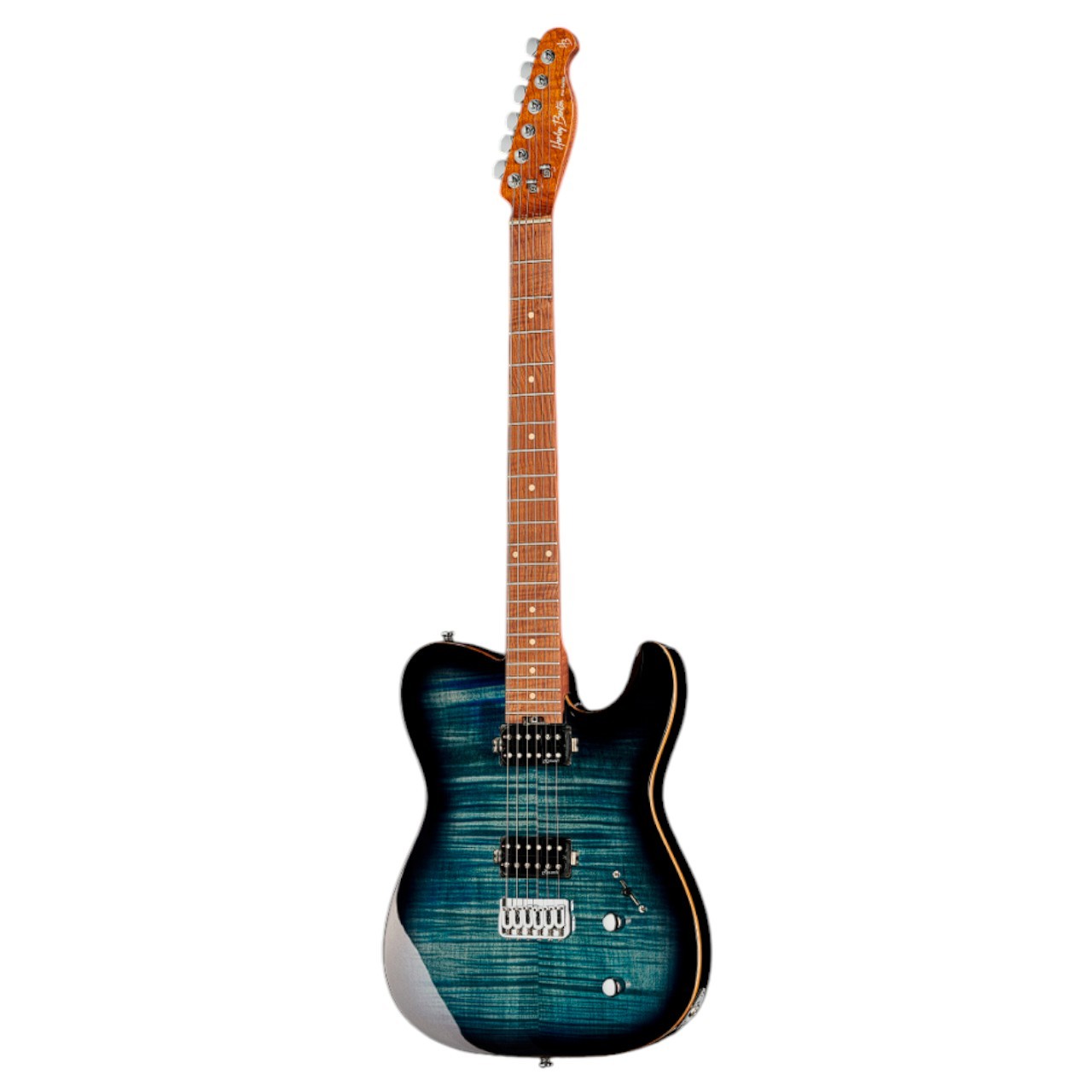 Harley Benton Fusion-T HH HT Roasted FBLB - современная электрогитара с потрясающим черно-синим покрытием Flamed Black and Blue. Обжаренный кленовый гриф и накладка обеспечивают повышенную стабильность и плавность игры, что делает ее идеальной для исполнения сложных соло и ритмических партий. Корпус из красного дерева обеспечивает теплые, резонансные тона, дополненные двойными хамбакерами, обеспечивающими динамический диапазон звучания. Функция разделения катушек добавляет универсальности, открывая доступ к четким тонам с одной катушкой - от мощных рок-тембров до мягкого блюза. Хардтейл-бридж обеспечивает превосходный сустейн и стабильность настройки, что делает эту гитару надежным выбором как для сценического, так и для студийного использования.