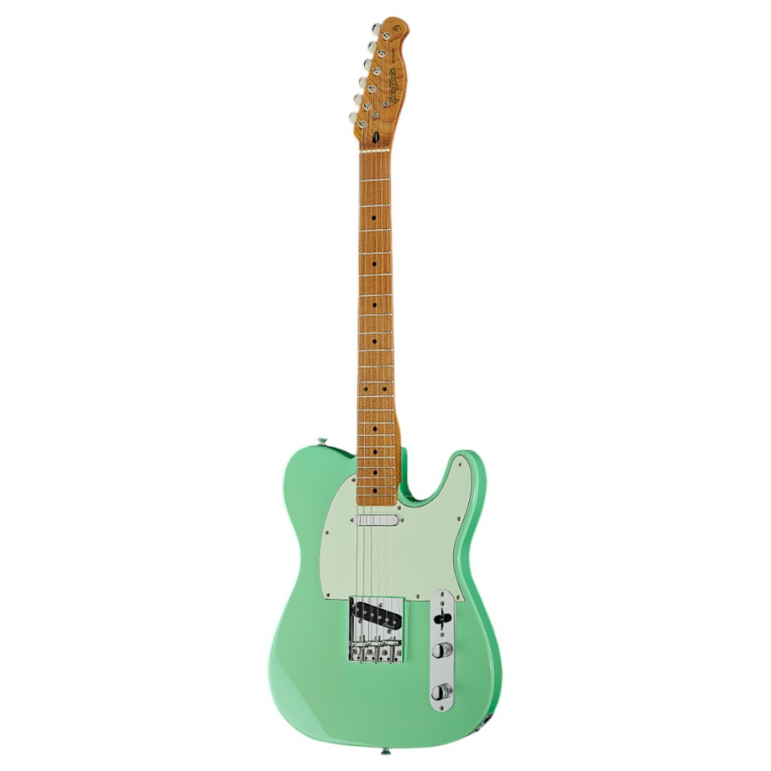 Harley Benton TE-62CC SFG - это стильная электрогитара, которая предлагает отличное сочетание классического дизайна и современной функциональности. Корпус изготовлен из тополя, что обеспечивает легкость и комфорт игры. Вкрученный гриф и накладка из карамелизированного клена с профилем "Modern D" обеспечивают удобство исполнения и скорость. Два сингл-койл звукосниматели Roswell TEA Alnico-5 придают чистый, яркий тон, характерный для T-Style гитар. Мензура 648 мм, радиус накладки 305 мм и ширина верхнего порожка 42 мм делают инструмент универсальным для гитаристов с разным стилем игры. Фиксированный бридж, хромированная фурнитура и мятно-зеленый пикгард добавляют эстетики и обеспечивают стабильность настроек. Идеальный выбор для кантри, блюза, рока и инди.